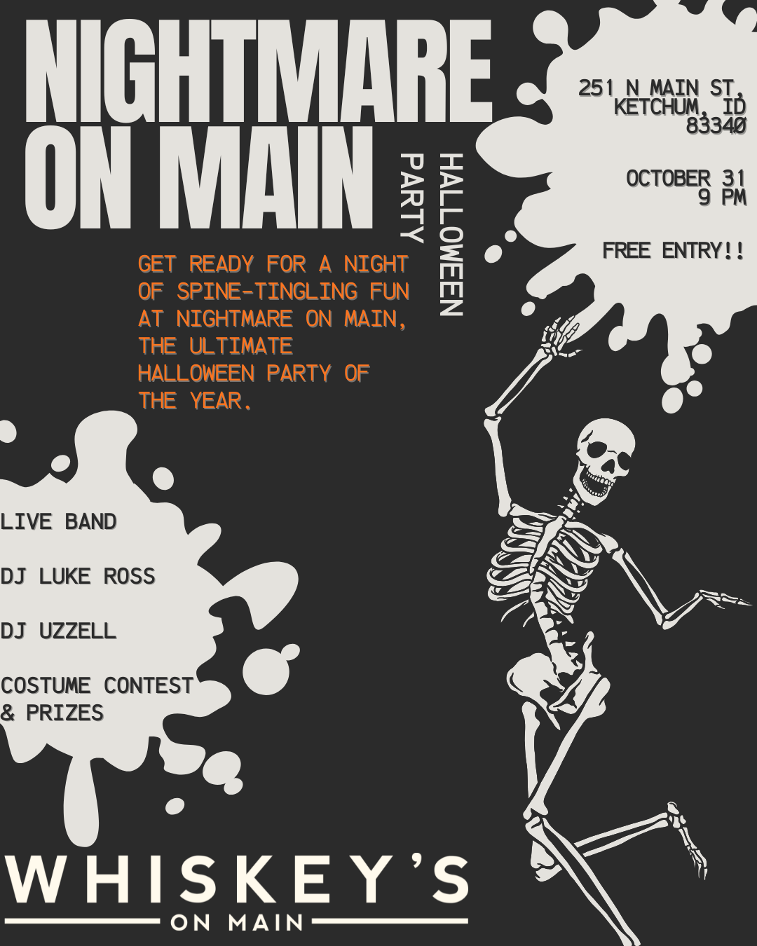 Oct 31 October 31 @ 9:00 pm - November 1 @ 2:00 am Nightmare On Main @ Whiskey’s On Main Whiskey's on Main More Info