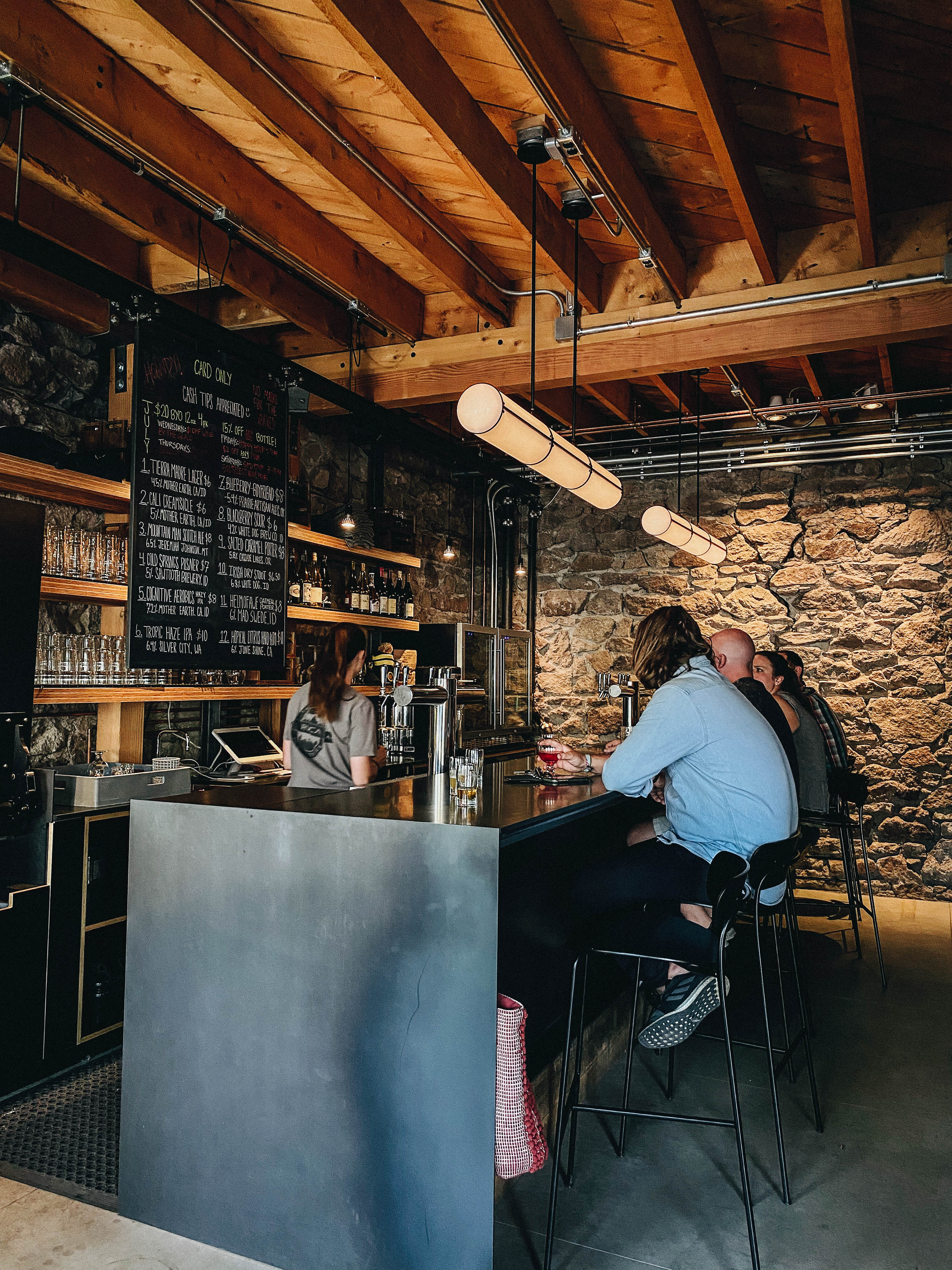 We’re a craft beer and wine bar focusing on organic, sustainable and biodynamic wines. We’re located in a piece of Ketchum history in the dynamite shed. We have 12 rotating taps of independent craft beer along with bottles and cans as well as a unique and younger approach to wine. We don’t serve food but we welcome and encourage guests to bring in their food of choice, grab some drinks and play games with friends!