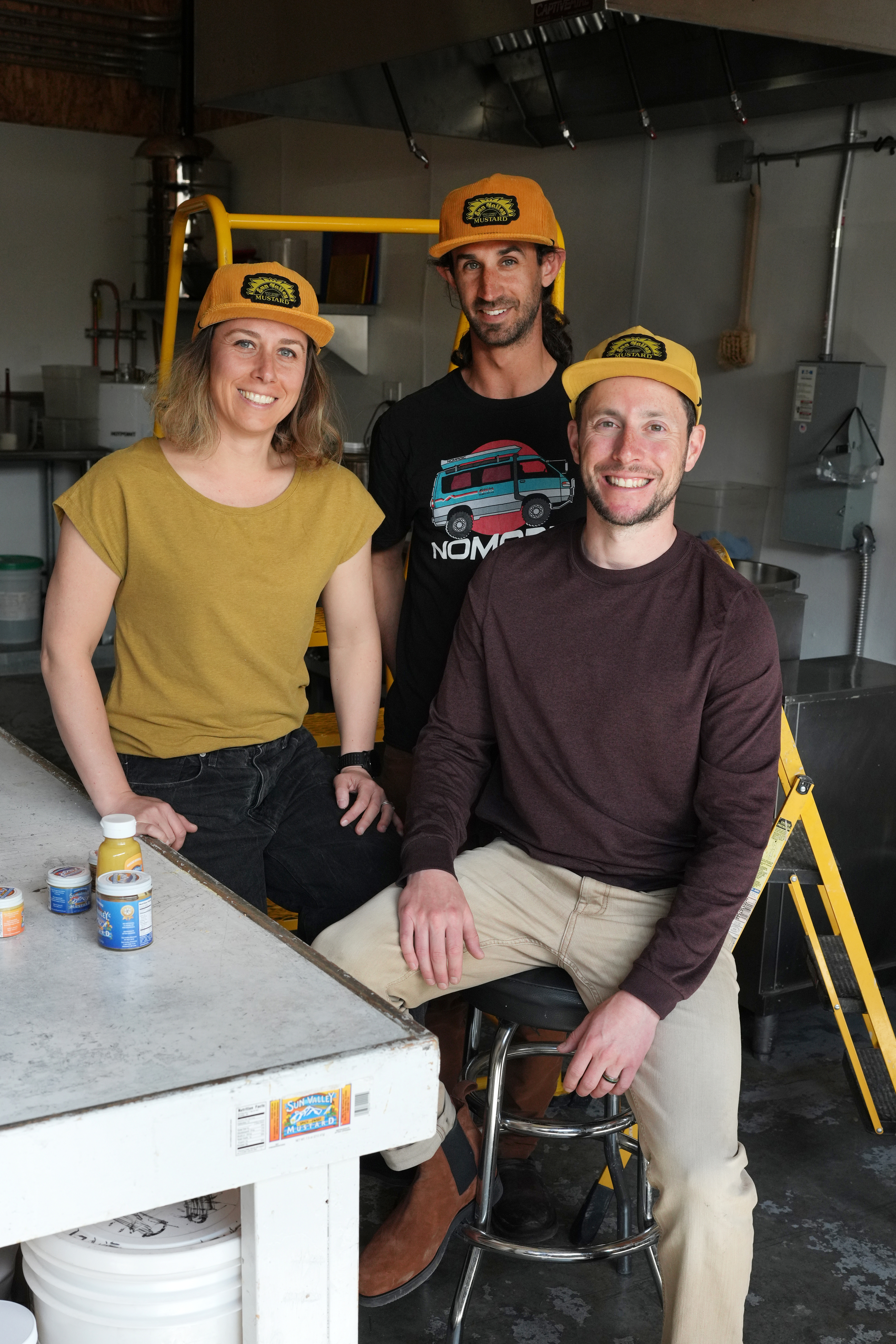 While going back to the brand’s roots was important for the three owners, injecting some new life into the brand and finding new ways to bring mustard to the people was also important for the three thirty-somethings. They created swag in the form of mustard-yellow corduroy hats and quickly started working with local companies on R&D to create new products to diversify the business. “People know mustard—some people love it, and some people it’s not for them, but it was about how can we bring mustard flavor and Sun Valley Mustard energy to more people and in different forms,” says Alex.